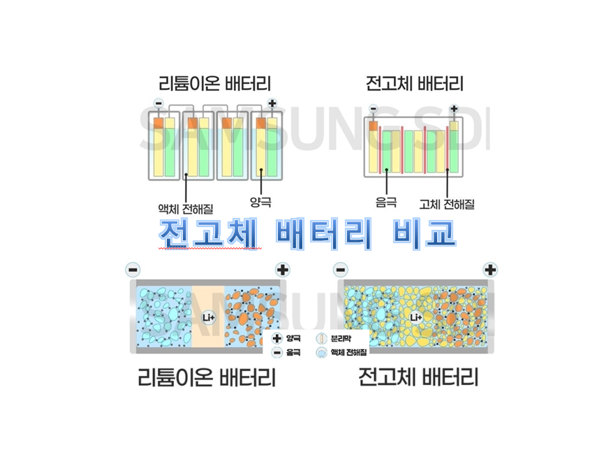 전기차 산업에 대한 경쟁이 글로벌시장에서 치열하게 이루어 지고 있습니다. 전기차 산업에서 경쟁분야는 다양하지만 그 중에서 가장 차별화가 이루어지는 분야가 바로 2차 전지 분야입니다. 이는 국가별 회사별 배터리 기술력 격차가 크고 진입장벽이 높은 시장이기 때문입니다. 리튬 이온 배터리의 구성은 양극, 음극, 분리막, 전해질로 되어있습니다. 우리가 일상 생활에서 쓰는 스마트폰, 전기자동차, 전동 공구등에서 사용되는 배터리는 액체 전해질을 사용합니다. 하지만 전고체 배터리는 액체 상태의 전해질을 사용하는것이 아니라 고체 상태의 배터리를 말합니다.