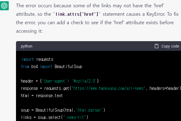 프로그래밍 언어 문법 오류 검토 기능을 검토할 때 단 한 문장이면 1:1이 과외 선생님처럼 검토를 해줍니다. 그럼 프로그래밍 언어를 공부하지 않아도 되는 세상이 올 것이다!라고 착각하는 분들이 생기겠죠? 사용자가 프로그래밍을 실력에 비례해서 활용도가 높아지는 거 같습니다.