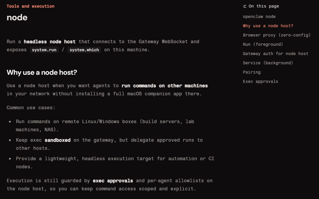 auth.token)과 별도로 관리해야 합니다. 원격 토큰이 유출돼도 마스터 권한은 안전하게 유지됩니다. - 여러 노드는 역할별로 분리 운영이 유리: 하나의 게이트웨이 아래 고성능·고비용 모델 노드와 가벼운 경량 노드를 분리 운영하면 비용 효율을 극대화하면서도 다양한 자동화 시나리오를 처리할 수 있습니다.
