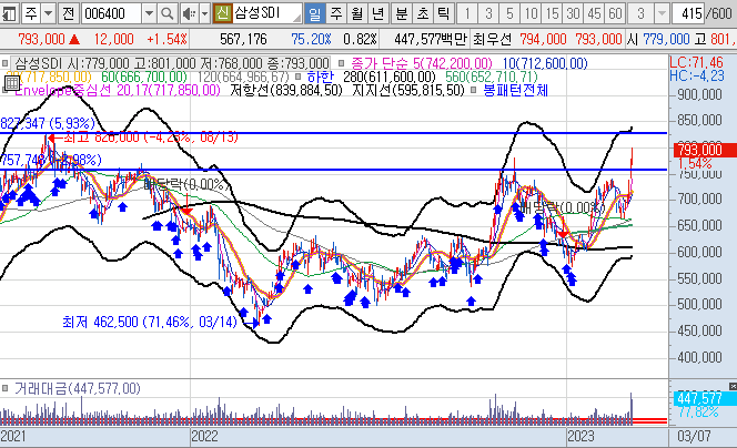 기업소개 : Samsung SDI는 삼성 그룹의 자회사로, 전기 자동차, 스마트폰 및 기타 장치에 사용할 수 있는 다양한 배터리를 생산합니다. 이 회사는 또한 솔리드 스테이트 배터리와 같은 새로운 배터리 기술 개발에 많은 투자를 해왔습니다. 최근 다양한 수주 소식으로 인해 시장의 주목을 받고 있습니다.