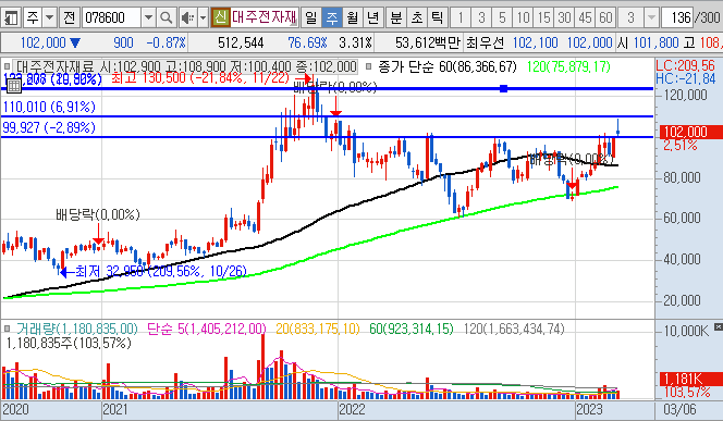 기업소개 : 배터리 관리 시스템과 전력 변환 시스템을 포함한 다양한 배터리 관련 부품을 생산합니다. 이 회사의 제품은 전기 자동차 및 재생 에너지 시스템을 포함한 다양한 응용 분야에 사용됩니다. 최근 2차 전지용 실리콘 음극재, 원재료 등 생산을 위한 부지 확보 목적으로 약 268억 규모(자기 자본대비 20.38%) 신규 시설 투자공시로 인해 시장의 주목을 받게 되었습니다. 이미 단기 박스권 바닥을 다졌으며 박스권 돌파가 기대되는 종목입니다.