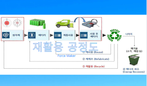 글로벌 지원 정책 및 친환경 정책 등으로 인하여 전기차 수요가 많아졌습니다. 이에 따라 이차전지의 수요는 크게 늘어나고 있으며 관련 산업에서 대한민국은 생산 관련 큰 비중을 차지하고 있습니다. 특히 소재산업에서 높은 경쟁력을 가지고 있으며 중국의 정책적인 공세와 일본 기업들의 기술력과 경쟁하고 있는 상황입니다. 이 산업에서 원가 비용이 가격경쟁력을 크게 좌우하고 있습니다. 특히 양극재의 경우 전지 소재 원가의 30% 이상을 차지고 하고 있습니다. 이러한 자원뿐 아니라 글로벌 경쟁 상황을 극복하기 위한 해결책으로 제조공정에서 발생하는 스크랩의 재활용 등 다시 이차전지의 재료로 재공급하는 방법입니다. 현시점에서 재활용되는 배터리의 규모는 5% 미만으로 적은 상황이지만 추후 시장의 규모가 지속 증가하는 추세이기 때문에 관련 기술들이 주목받고 있습니다. 환경적인 차원에서 주목해야 할 점은 배터리 산업에서 발생하는 환경오염적인 요소들이 상당한데 지구 환경적인 관점에서 관심을 가지고 접근해야 하는 상황입니다. 현재 중소기업들이 발 빠르게 대응하고 있으며 대형그룹사들 또한 관련 기술들을 수직계열화하여 경쟁에 참여하고 있습니다. 국내 시장의 경우 폐배터리 재활용 시장은 전지의 교체주기를 7~9년으로 전망했을 경우 1조 원 이상의 매출이 기대되고 있습니다.